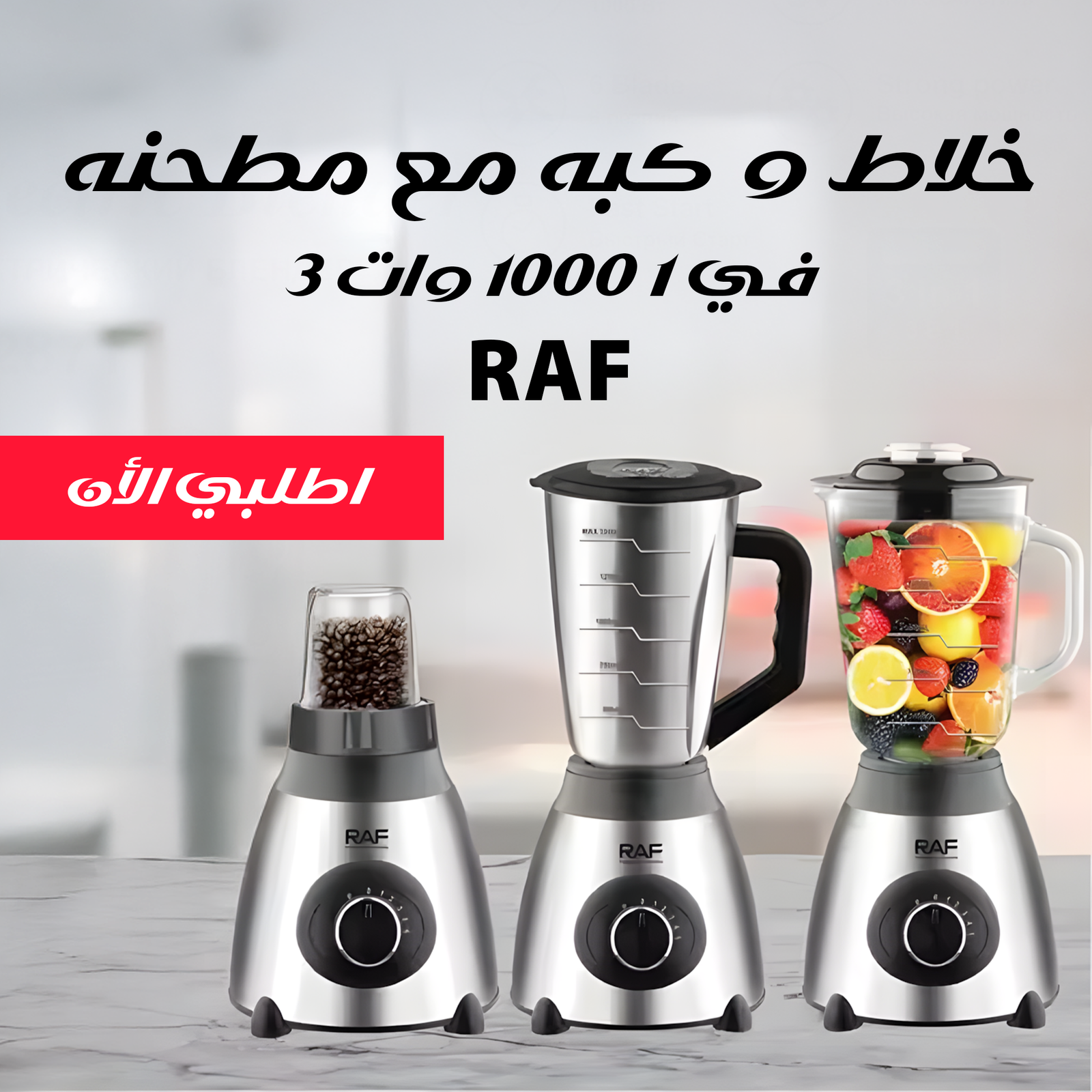 ٣ أجهزة في جهاز واحد! خلاط + كبة + مطحنة RAF 3×1 قوة وأناقة وسهولة في كل استخدام! 💥